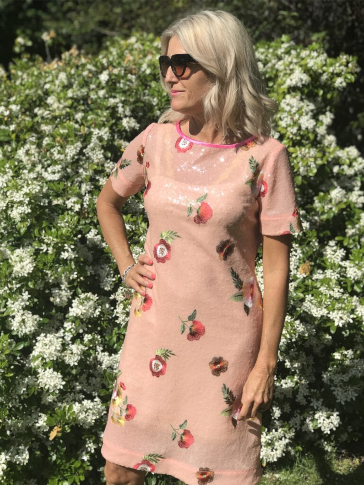I love this dress, sequins and flowers – a perfect outfit for a special party during the festive season.